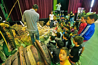 Després d'escoltar la lliçó, va venir la hora de posar els coneixements en pràctica. Alumnes, professors i expositors ens vam posar a cosntruir una barraca de pedra seca amb caixes, cartrons i altres materials fàcils de maniobrar. Tots ens ho vam passar d'allò més bé, com també els mateixos professors. La feina ben feta va satisfer-se amb unes bones fotografies dins de la barraca per part dels alumnes i dels professors.